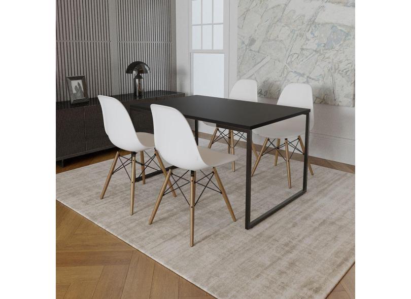 O menor preço encontrado no Brasil para Mesa Industrial Base De Ferro Preto Tampo 137X90 Preto 4 Cadeiras Madeira Assento Branco Preto atualmente é R$ 1.416,80.