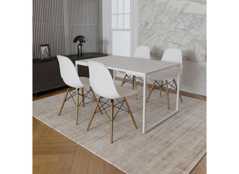 O menor preço encontrado no Brasil para Mesa Industrial Base Ferro Branco Tampo 137X90 Branco 4 Cadeiras Madeira Assento Branco Branco atualmente é R$ 1.416,80.