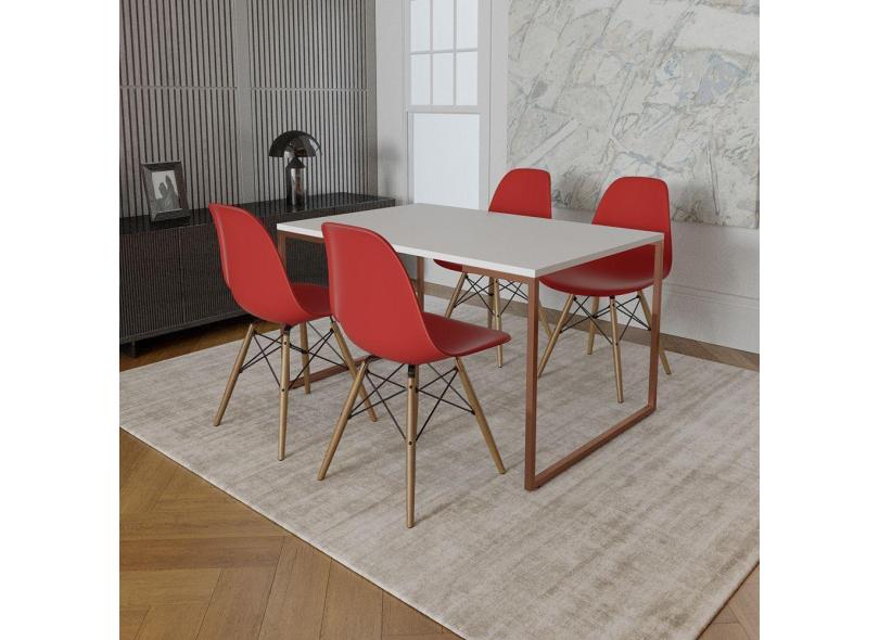 O menor preço encontrado no Brasil para Mesa Industrial Base Ferro Cobre Tampo 137X90 Branco 4 Cadeiras Madeira Assento Vermelho Branco atualmente é R$ 1.487,20.