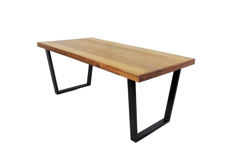 Mesa Industrial Diamond Madeira Maciça 2,20m Ferragem Preta
