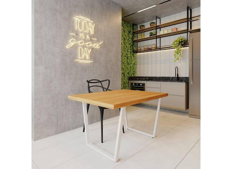 Mesa Industrial para Ambiente Biofílico Madeira Maciça Lanna com Ferragem 1,20m Branco