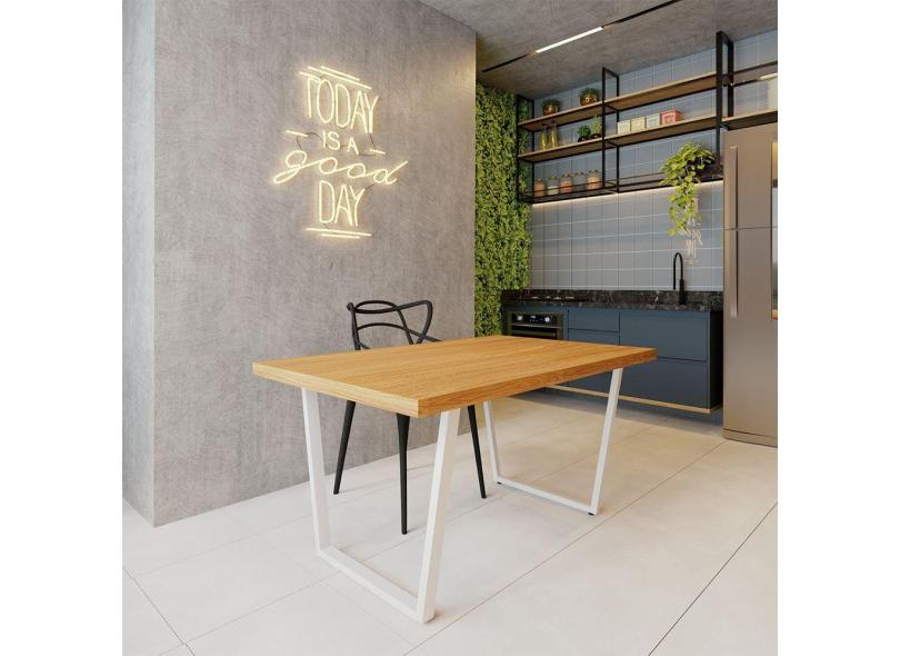 Mesa Industrial para Ambiente Biofílico Madeira Maciça Lanna com Ferragem 1,50m Branco