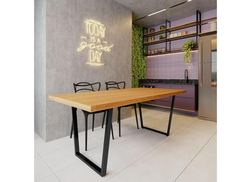 Mesa Industrial para Ambiente Biofílico Madeira Maciça Lanna com Ferragem 2,00m Preto
