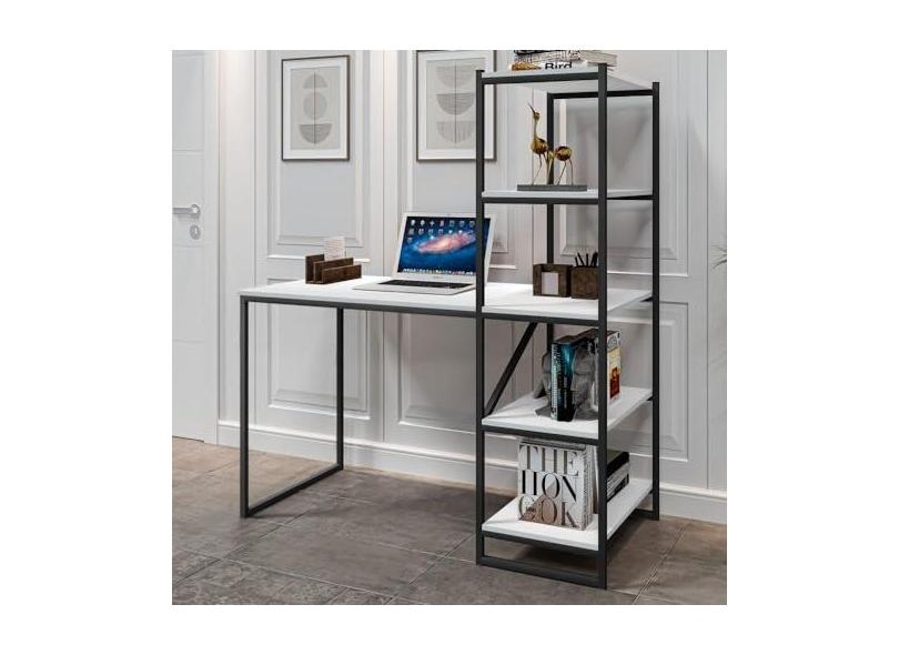 Mesa Industrial para Escritório com Prateleira Frist Preto e Branco