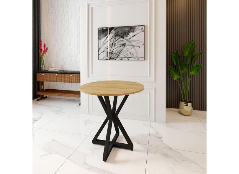 Mesa Industrial Redonda Pé de Ferro Tampo em Madeira Maciça 70x70cm