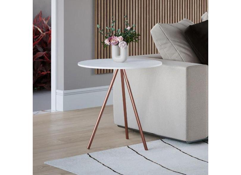 Mesa Lateral Gabriela Tampo Madeira Branco Pés Cobre Branco