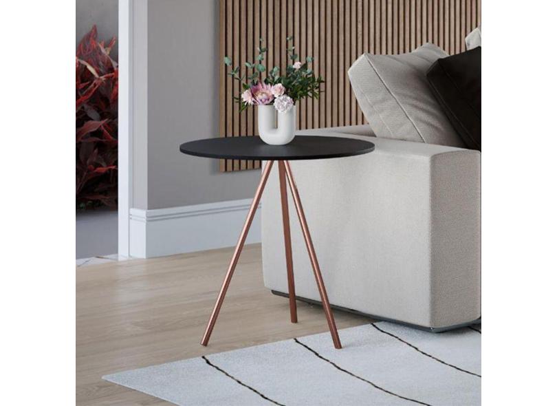Mesa Lateral Gabriela Tampo Madeira Preto Pés Cobre - Preto