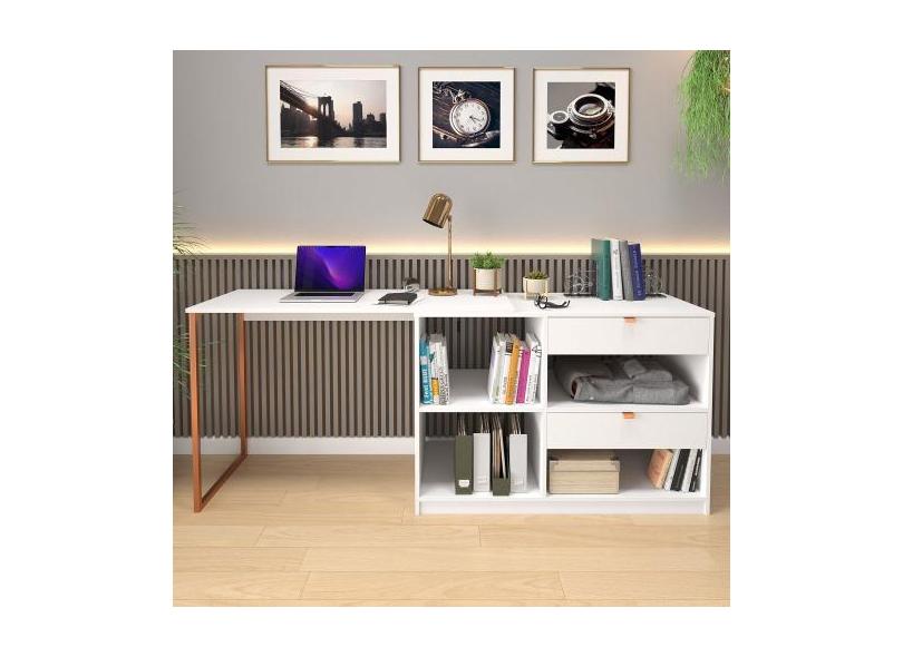Mesa madeira em L Alberto Magno para escritório Home Office Branca com
