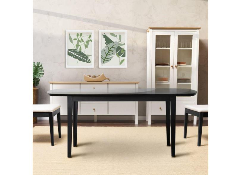 Mesa Oval 4 Lugares 1,4m Tampo Vidro e MDF Tiê CabeCasa MadeiraMadeira Preto
