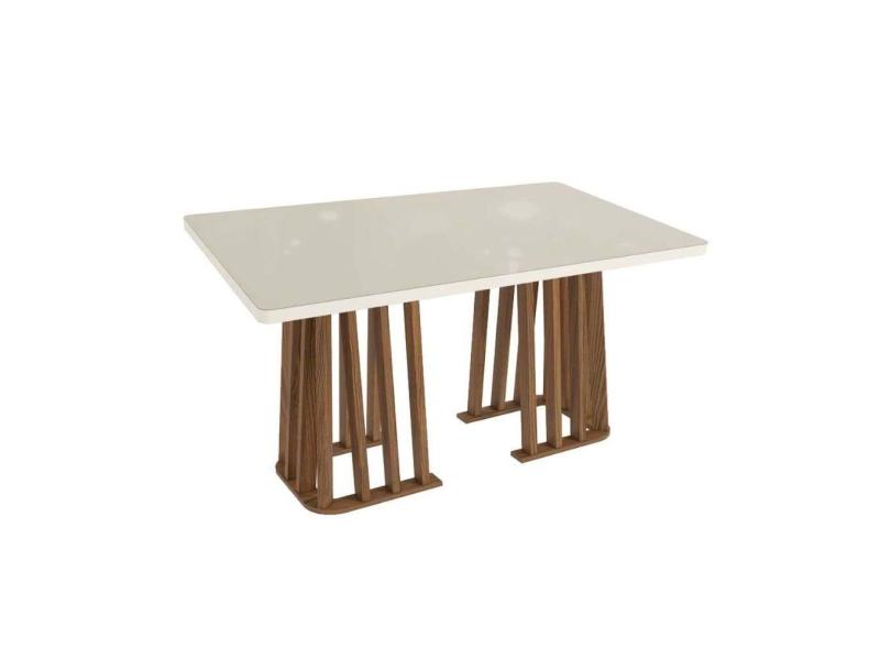Mesa p/ Cozinha Alteia c/ Tampo Madeirado c/ Vidro 90x160cm Nogueira/Off White/Vidro Off White - Kappesberg