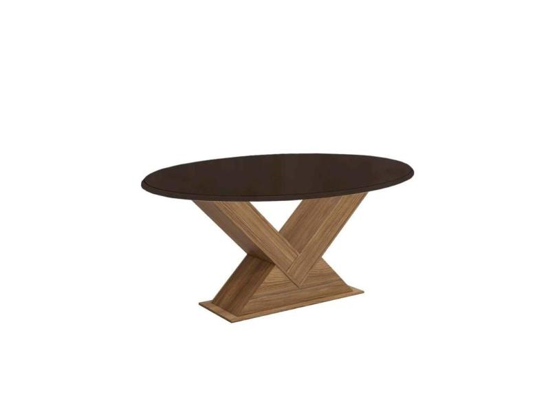 Mesa p/ Cozinha Amora c/ Tampo Madeirado c/ Vidro 105x180cm Nogueira/Preto fosco/Vidro preto - Kappesberg