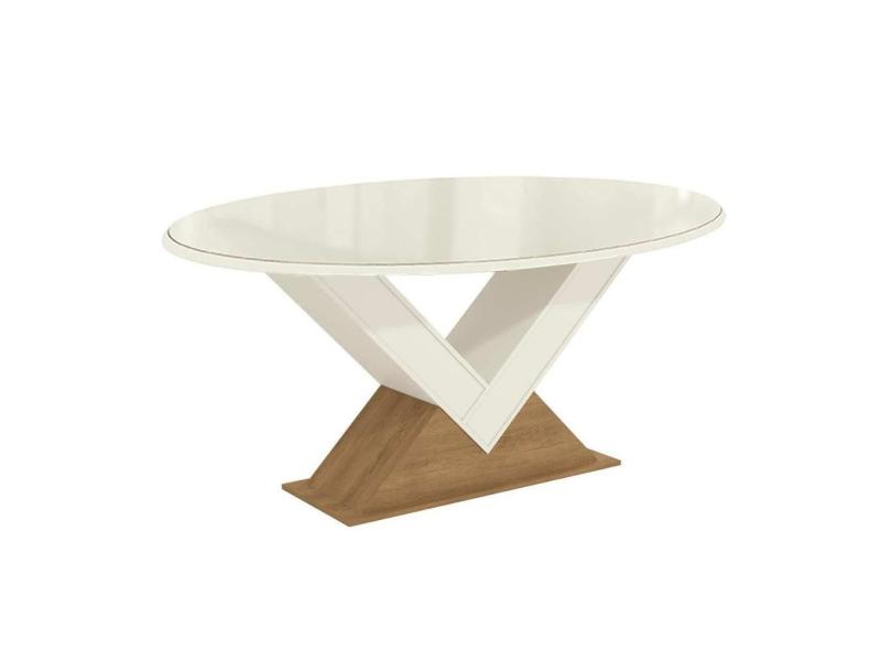 Mesa p/ Cozinha Amora c/ Tampo Madeirado c/ Vidro 180x105cm Freijó/Off White - Kappesberg