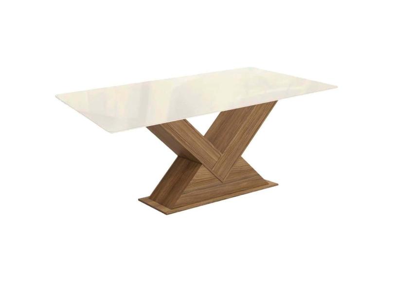Mesa p/ Cozinha Amora c/ Tampo Madeirado c/ Vidro 90x160cm Nogueira/Off White/Vidro Off White - Kappesberg