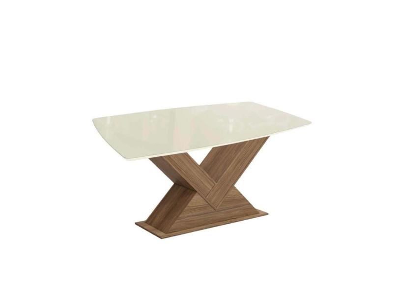 Mesa p/ Cozinha Amora c/ Tampo Madeirado c/ Vidro 90x170cm Nogueira/Off White/Vidro Off White - Kappesberg