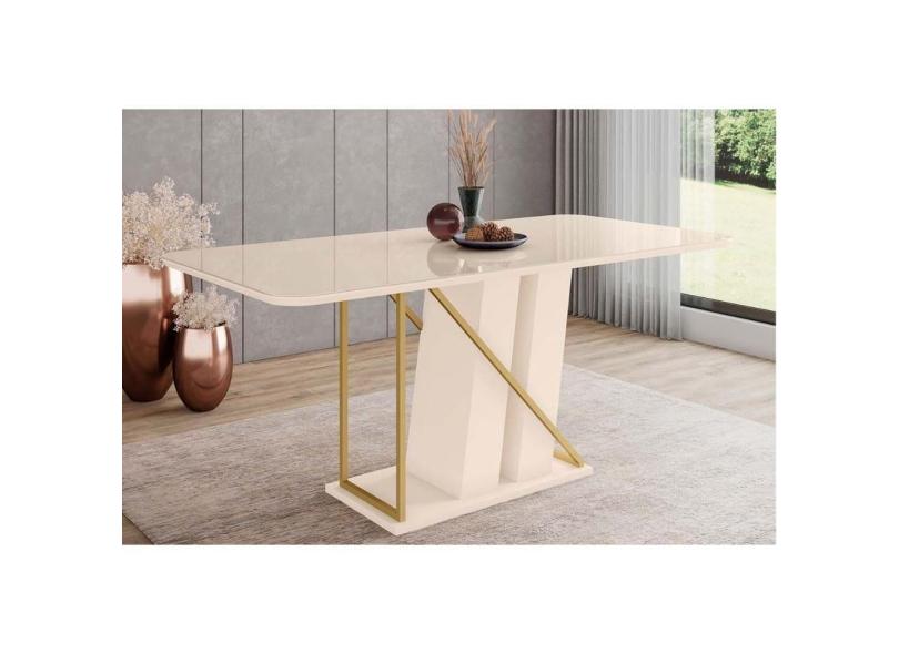 Mesa p/ Cozinha Andy SC100 c/ Tampo Madeirado c/ Vidro Curvo 180x90cm Off White - Henn