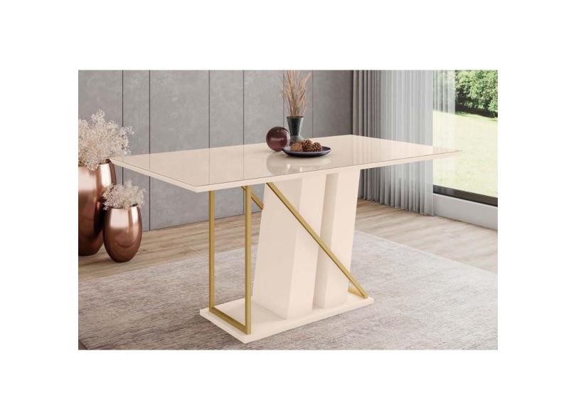 Mesa p/ Cozinha Andy SC98 c/ Tampo Madeirado c/ Vidro Reto 160x90cm Off White - Henn