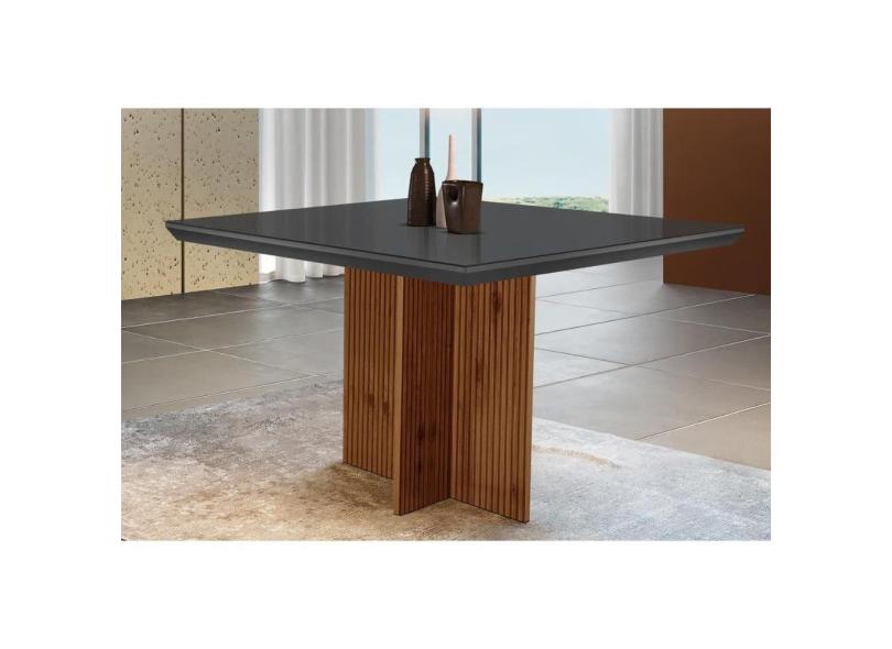 Mesa p/ Cozinha Berlim c/ Tampo 90x90cm Madeirado Vidro Canto Curvo - Imbuia Ripado 3D/Grafite - Rufato