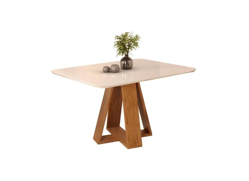 Mesa p/ Cozinha Celeste c/ Tampo Madeirado Vidro Curvo 120x90cm Freijó/Off White - DJ Móveis