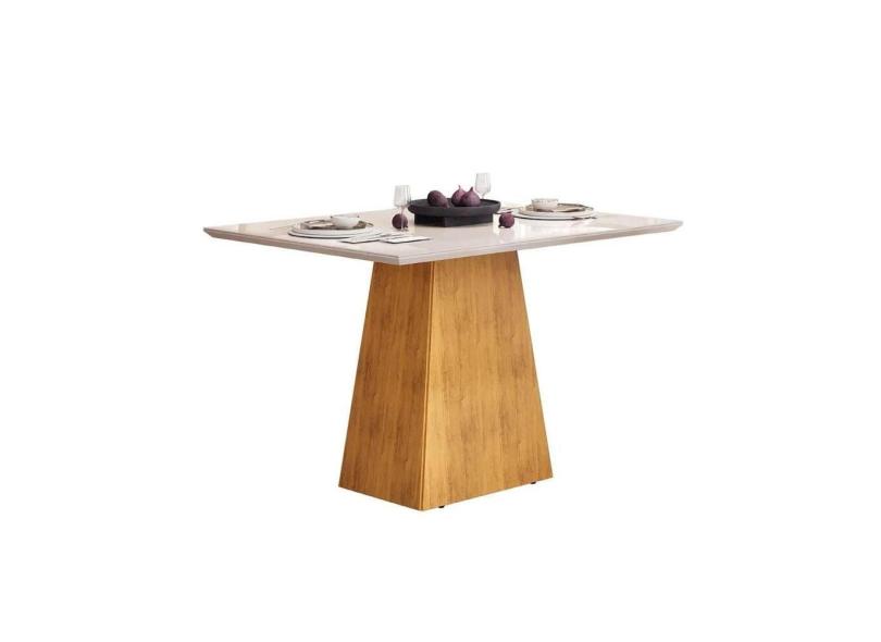 Mesa p/ Cozinha Dulce c/ Tampo Madeirado Vidro Reto 120x90cm Cedro/Off White - DJ Móveis