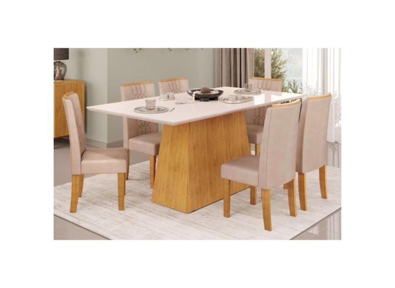 O menor preço encontrado no Brasil para Mesa p/ Cozinha Dulce Tampo Madeirado c/ Vidro Reto 180x90cm e 6 Cadeiras Zoe Cedro/Off White - Suede Creme - DJ Móveis atualmente é R$ 2.289,83.