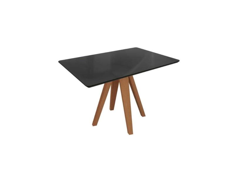 Mesa p/ Cozinha Duna Madeira Maciça c/ Tampo Madeirado c/ Vidro 80x120cm Carvalho/Preto fosco/Vidro preto - Kappesberg