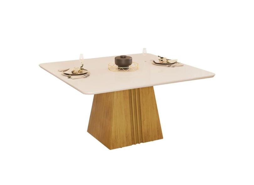 Mesa p/ Cozinha Itália c/ Tampo Madeirado c/ Vidro Curvo 136x136cm Cedro/Off White - DJ Móveis