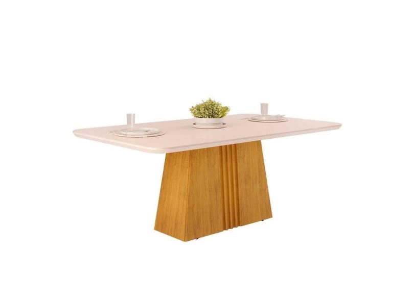 Mesa p/ Cozinha Italia c/ Tampo Madeirado c/ Vidro Curvo 170x90cm Cedro/Off White - DJ Móveis