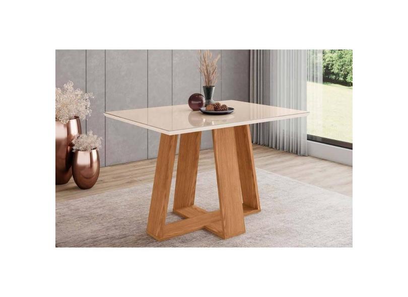 Mesa p/ Cozinha Lins SC90 c/ Tampo Madeirado c/ Vidro Reto 120x80cm Nature/Off White - Henn