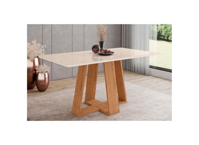 Mesa p/ Cozinha Lins SC93 c/ Tampo Madeirado c/ Vidro Reto 160x90cm Nature/Off White - Henn