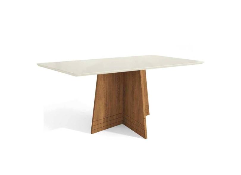 Mesa p/ Cozinha Lótus c/ Tampo Madeirado c/ Vidro 80x120cm Freijó/Off White - Kappesberg