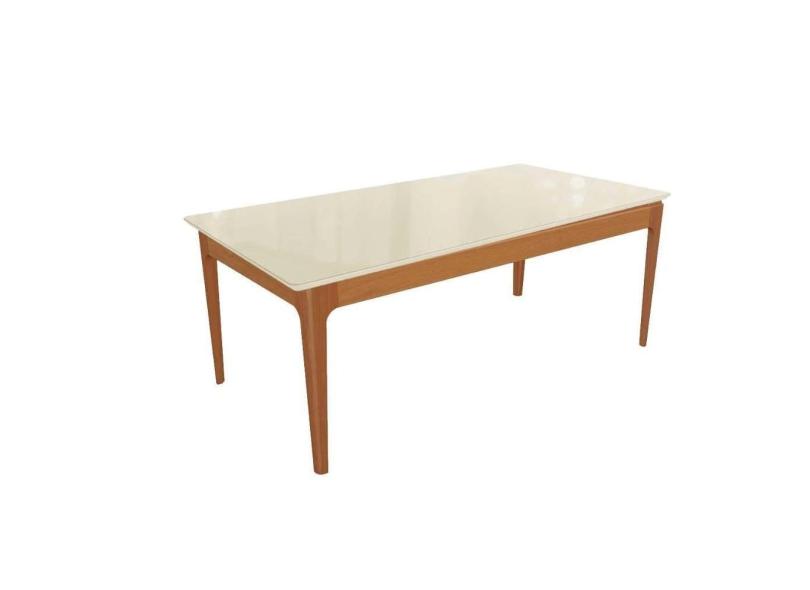 Mesa p/ Cozinha Mira Madeira Maciça c/ Tampo Madeirado c/ Vidro 200x100cm Carvalho/Off White/Vidro Off White - Kappesberg
