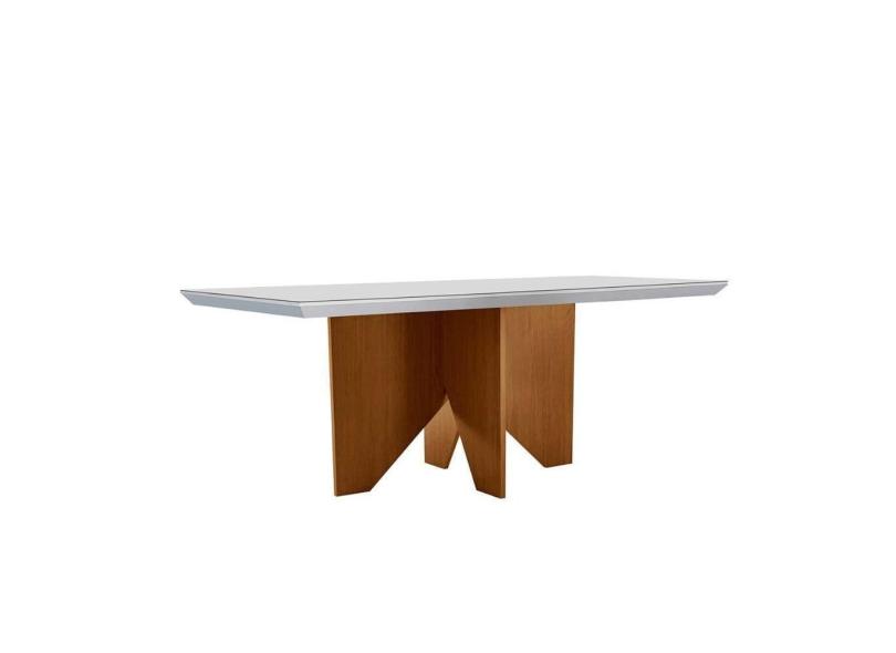 Mesa p/ Cozinha Nevada c/ Tampo 120x80cm Madeirado Vidro Canto Curvo - Imbuia/Off White - Rufato
