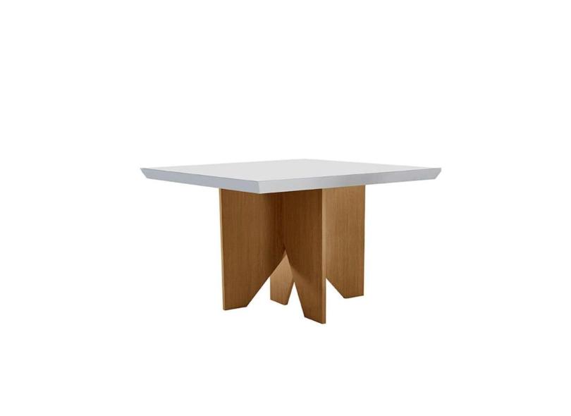 Mesa p/ Cozinha Nevada c/ Tampo 90x90cm Madeirado Vidro Canto Curvo - Imbuia/Off White - Rufato