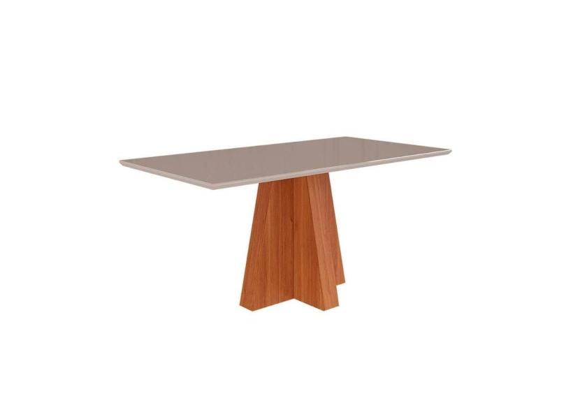 Mesa p/ Cozinha Patricia c/ Tampo Madeirado c/ Vidro 160X80cm Cinamomo/Off White - Cimol