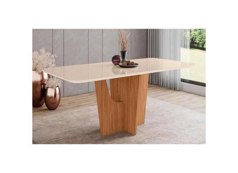 Mesa p/ Cozinha Vértice SC88 c/ Tampo Madeirado c/ Vidro Curvo 180x90cm Nature/Off White - Henn