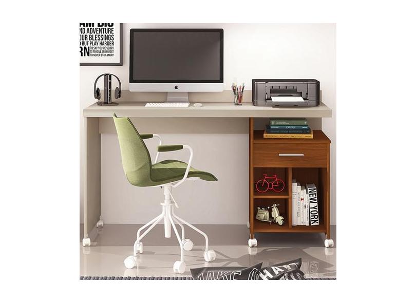 Mesa Para Computador 1 Gaveta Slim Rodízio Off White Freijó - Germai