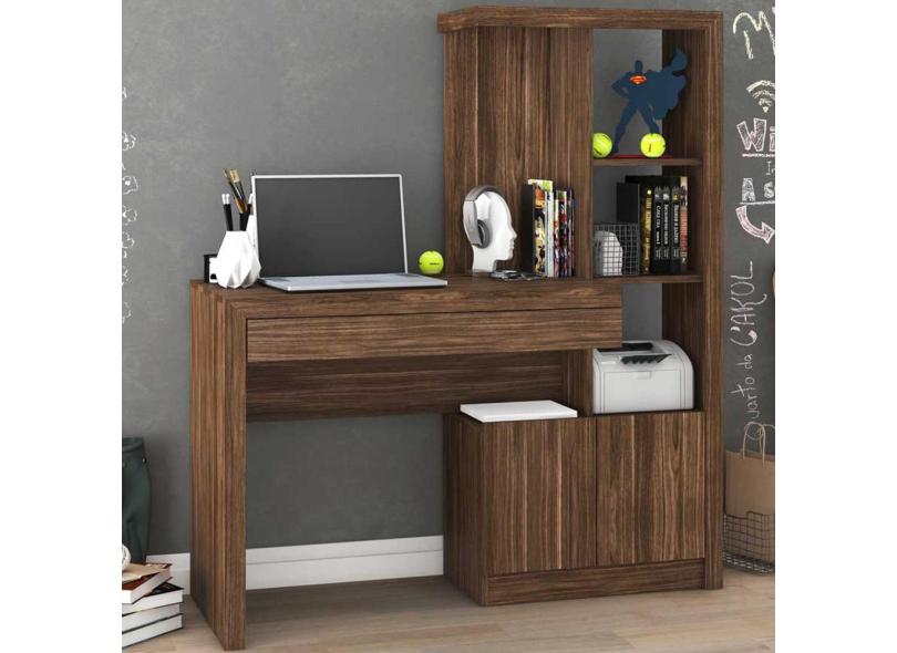 Mesa Para Computador 2 Portas 1 Gaveta Me4143 Nogal - Tecno Mobili