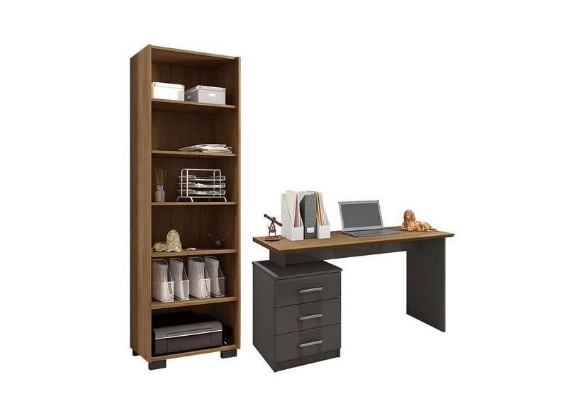 Mesa Para Computador Flay E Livreiro Office Freijó Grafite Perolizado