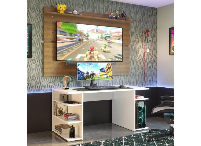 Mesa Para Computador Gamer E Painel Tv Madesa - Branco/Rustic