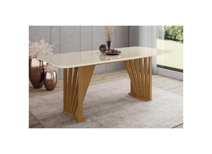 Mesa Para Cozinha Adriana Sc46 + Tampo Madeirado Vidro Curvo 200x80cm Nature-off White - Henn