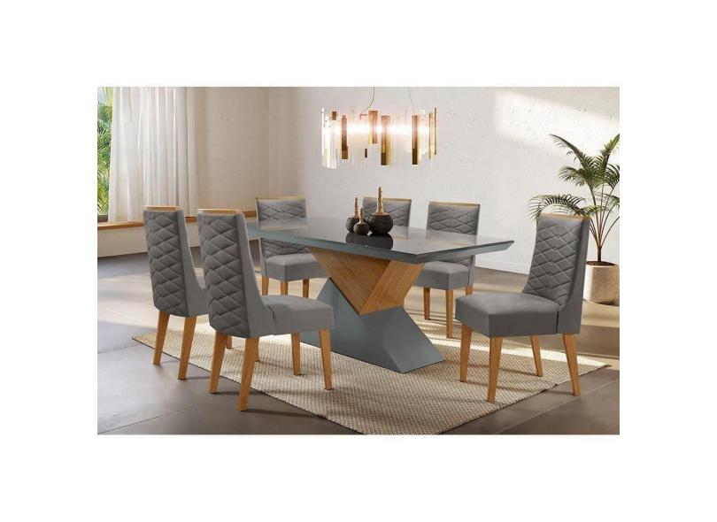 Mesa Para Cozinha Dubai + Tampo Madeirado Vidro Reto 180x90cm Grafite-imbuia-vidro Grafite - Rufato