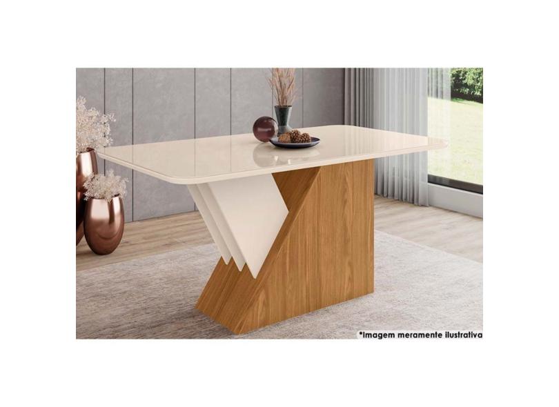Mesa para Cozinha Épic SC24 + Tampo Madeirado Vidro Curvo 160x90cm Nature/Off White - Henn