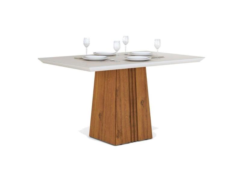 Mesa Para Cozinha Italia + Tampo Madeirado Vidro 120x90cm Rústico Terrara-off White - Dj Móveis