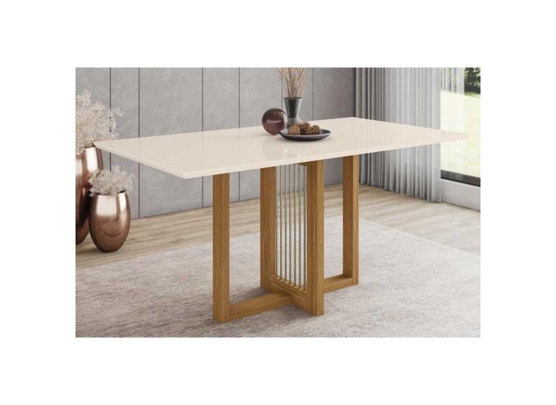 Mesa Para Cozinha Natalí Sc72 + Tampo Madeirado Reto 160x90cm Nature-off White - Henn