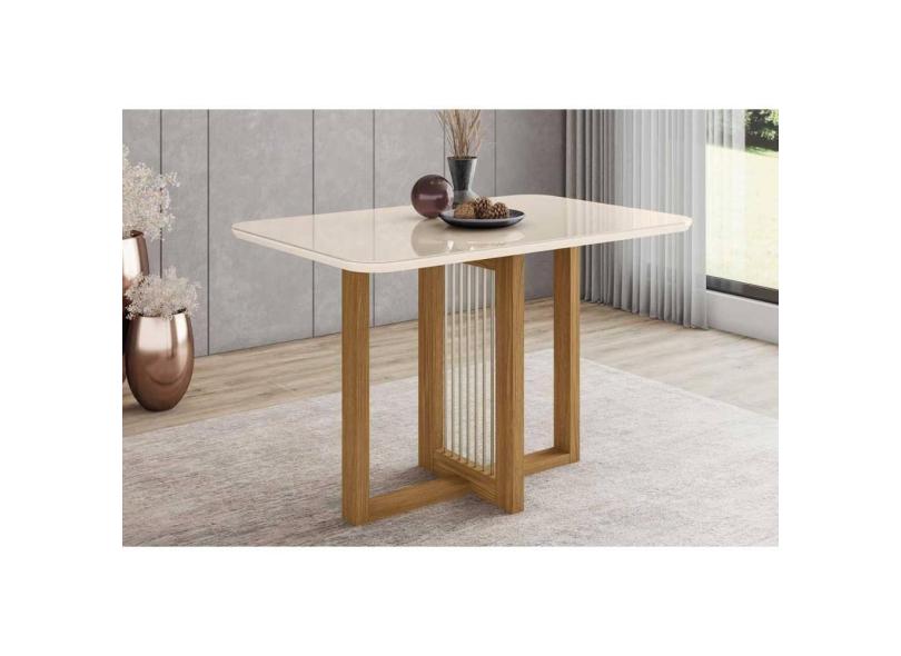 Mesa para Cozinha Natalí SC73 c/Tampo Madeirado Vidro Curvo 120x80cm Nature/Off White - Henn