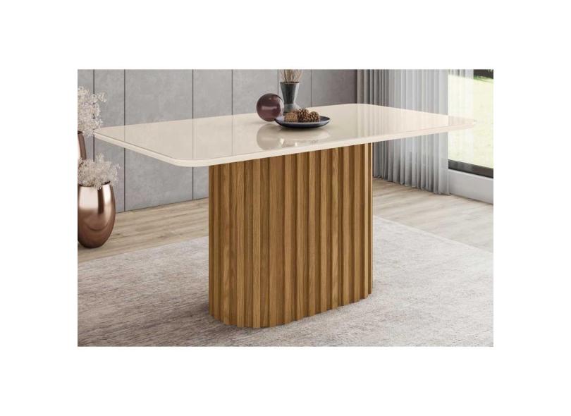 Mesa para Cozinha Solana SC68 + Tampo Madeirado Vidro Curvo 160x90cm Nature/Off White - Henn