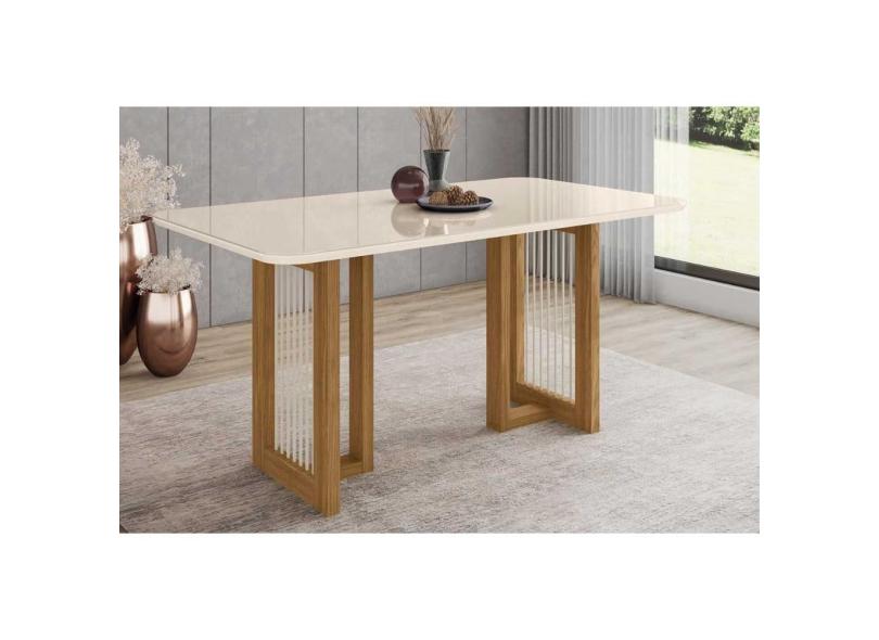 Mesa para Cozinha Yara SC79 c/Tampo Madeirado Vidro Curvo 160x90cm Nature/Off White - Henn