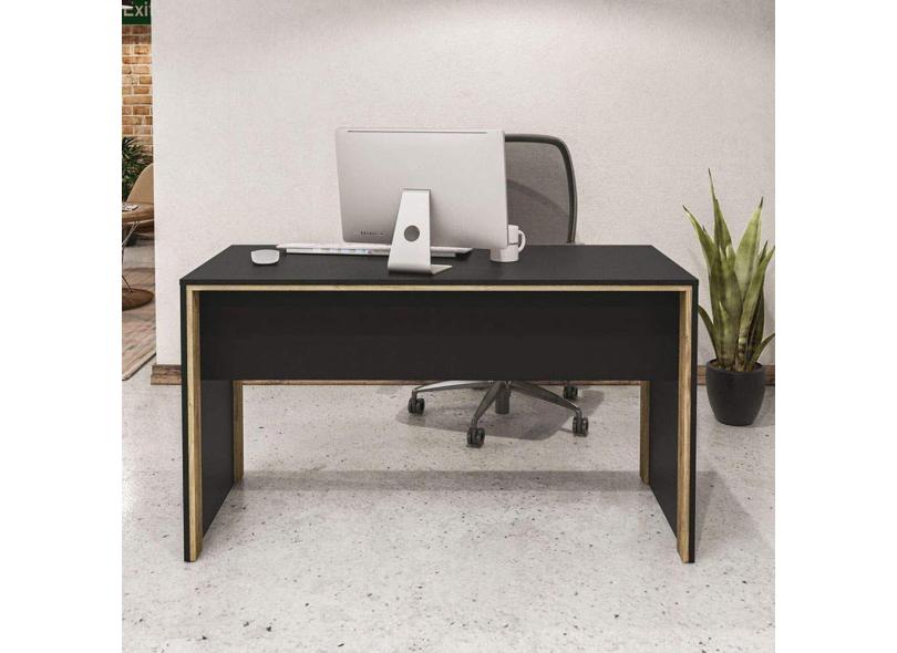 Mesa para Escritório 1,35m Los Angeles Politorno Preto/Carvalho Claro