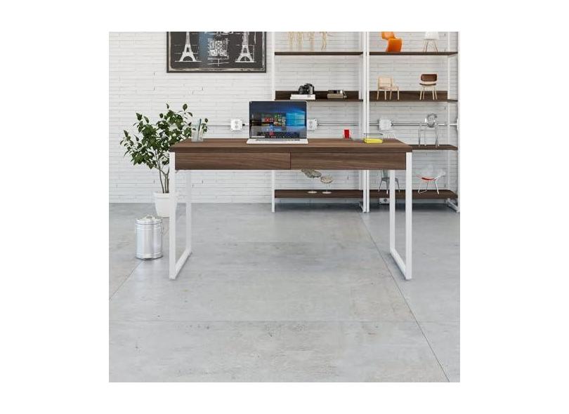 O menor preço encontrado no Brasil para Mesa para Escritório 135cm 2 Gavetas Kuadra Nogal/Est.Branca atualmente é R$ 499,98.