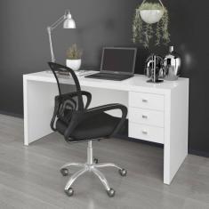 Mesa para Escritório 3 Gavetas Me4113 com Cadeira Diretor Tela Mesh Tok 3310 Branco